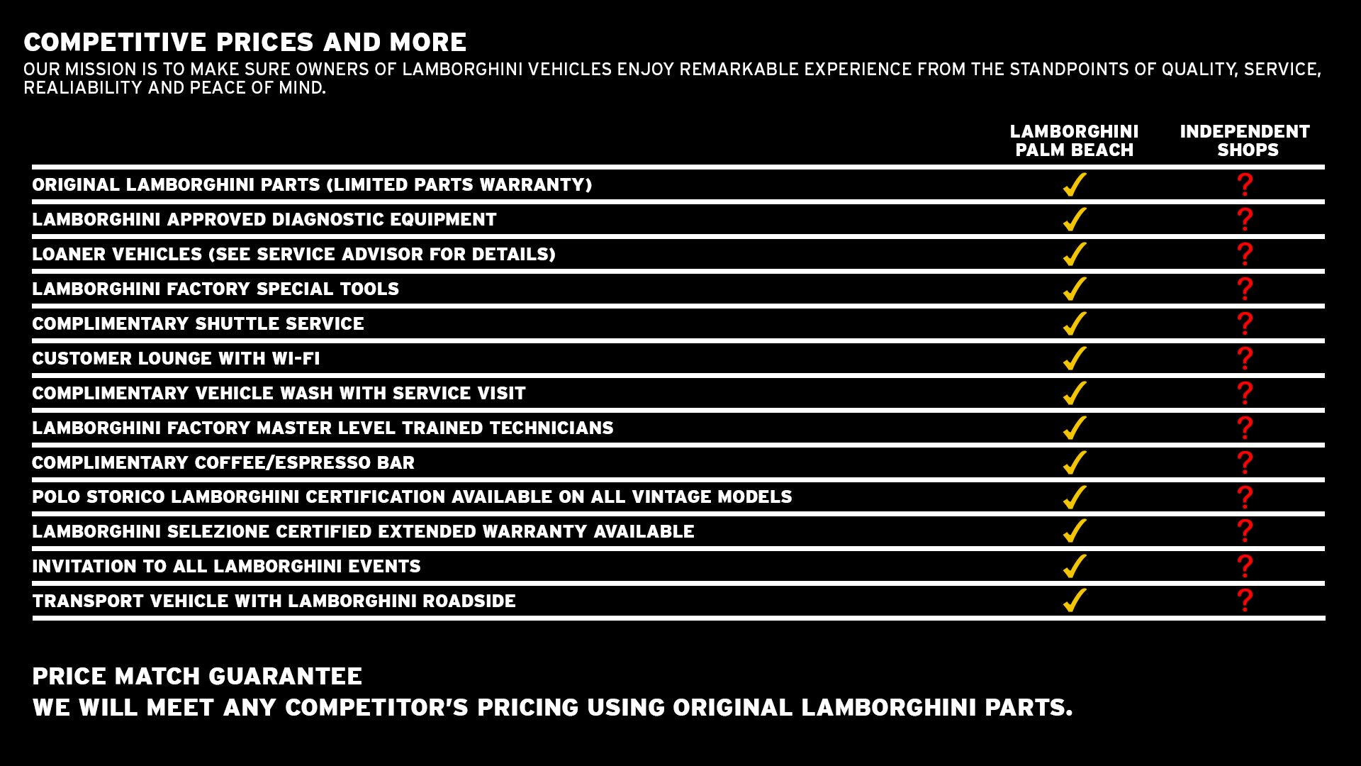 Lamborghini Palm Beach knows how integral your vehicle is to your daily life. We service and repair all Lamborghini models. To keep your vehicle in top condition, make sure to schedule oil changes and check-ups regularly. Our Service Center has a high-tech facility designed to help prevent break-downs and regularly service your vehicle. With certified technicians, latest specialized technology, and unparalleled customer service, we are sure we can provide you with the car service you need to get your Lamborghini back on the road quickly. Book your appointment online or give us a call to set up an appointment. You will be glad you chose Lamborghini Palm Beach to resolve your vehicle's issues correctly the first time! We look forward to serving you.