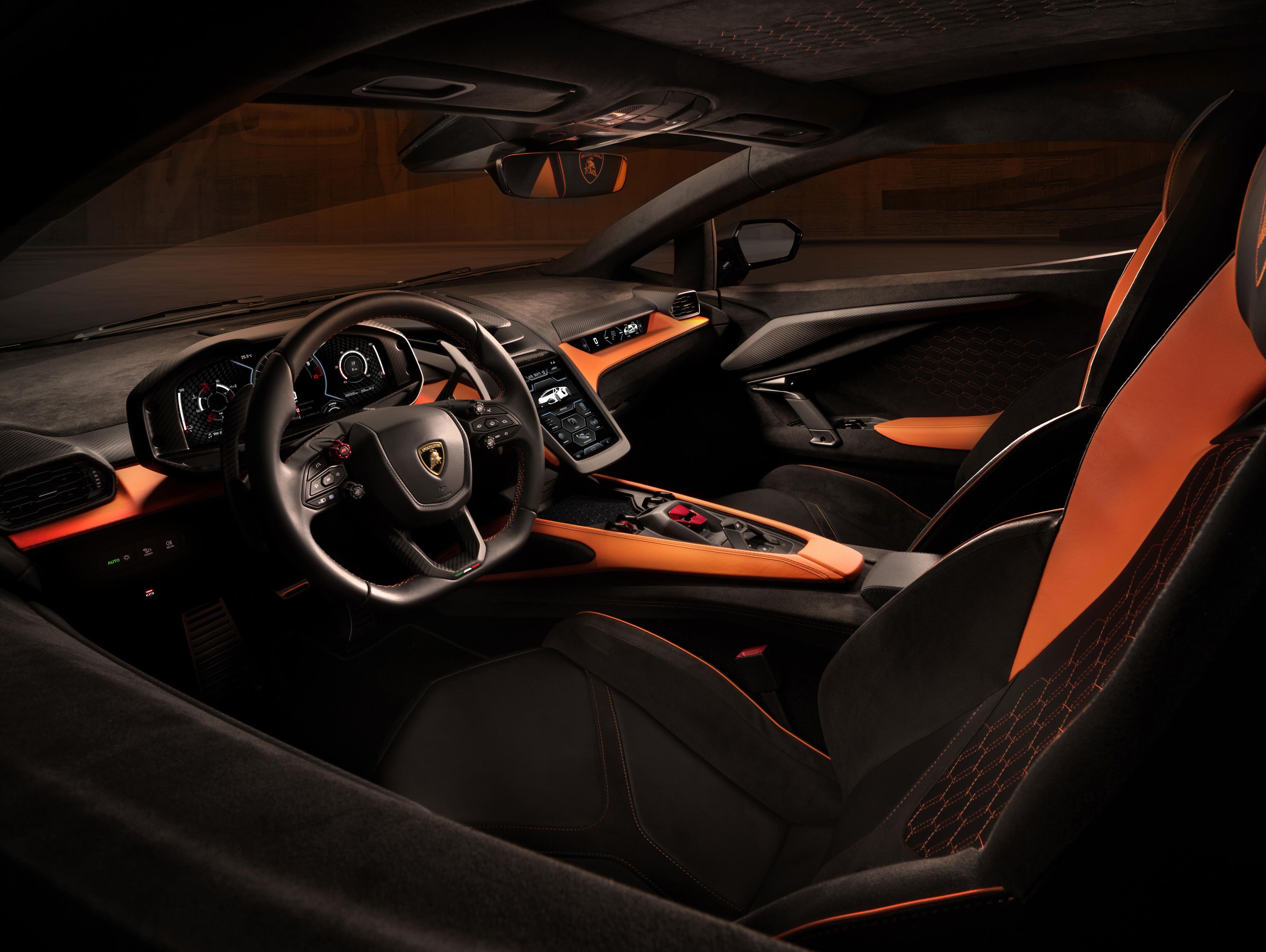 The interior of the Revuelto brings the “Feel Like a Pilot” concept to its utmost expression: simple volumes, symmetry, and a driver-focused approach make the cockpit an empowering station for the driver. The futuristic environment creates a seamless connection between driver and machine, while exclusive hexagon-shaped elements fulfill the dual mission of evoking past models and highlighting brand-new functional features.